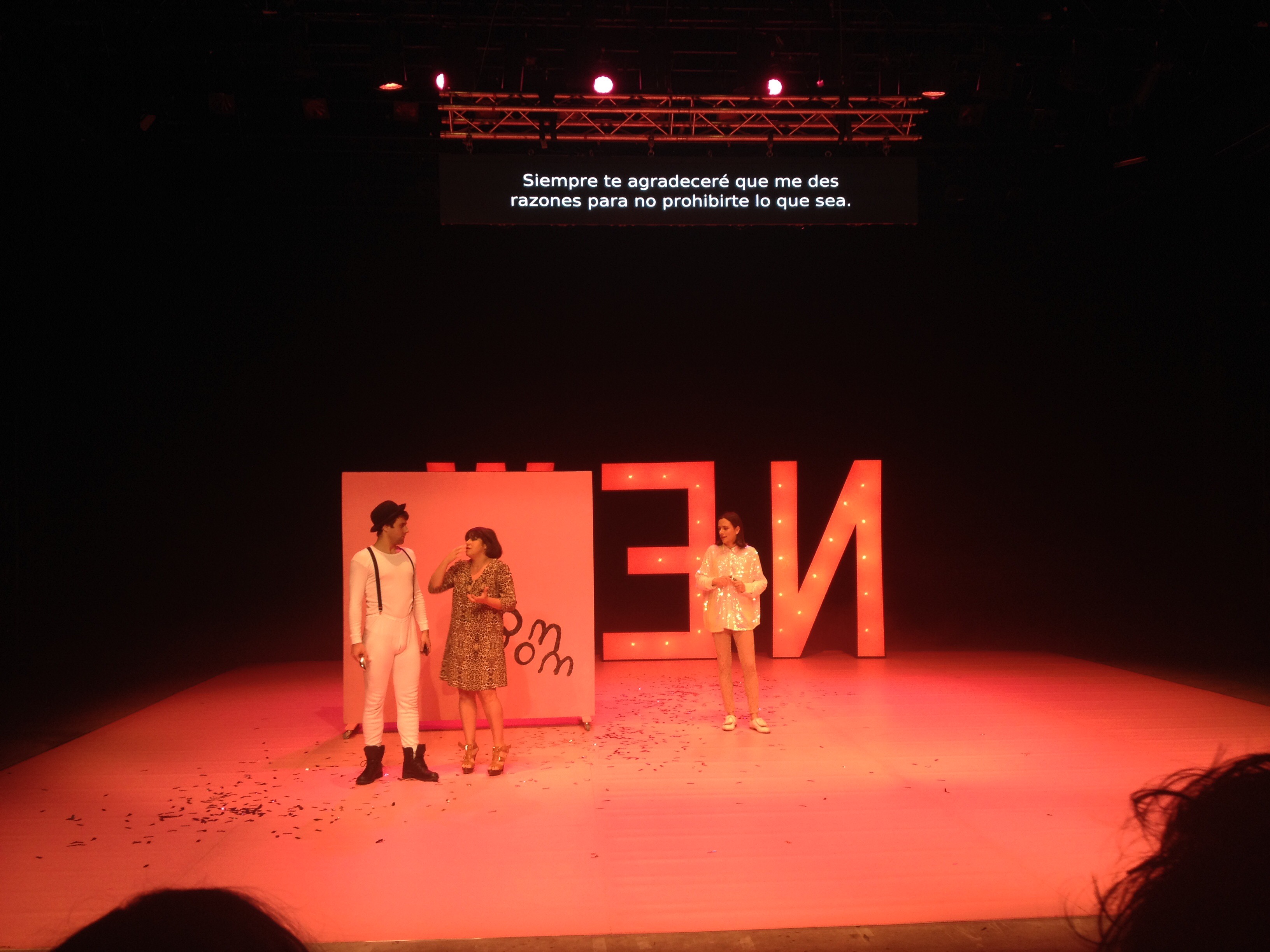 Una puesta en escena, del vestuario a la iluminación, pasando por la escenografía muy empastadas, apoyando la historia. Un espacio sonoro en perfecta sincronización con la interpretación y unos jovencísimos actores, en la mayoría de los casos, con una madurez apabullante. También merece una mención especial la mezcla de idiomas reales e inventados que generan un nuevo espacio de comunicación, los guiños de los intérpretes a los sobretítulos y la combinación extraordinaria de la construcción sintáctica de las frases nos desarman de palabras y no podemos más que rendirnos ante la maestría de un oficio muy bien entramado.