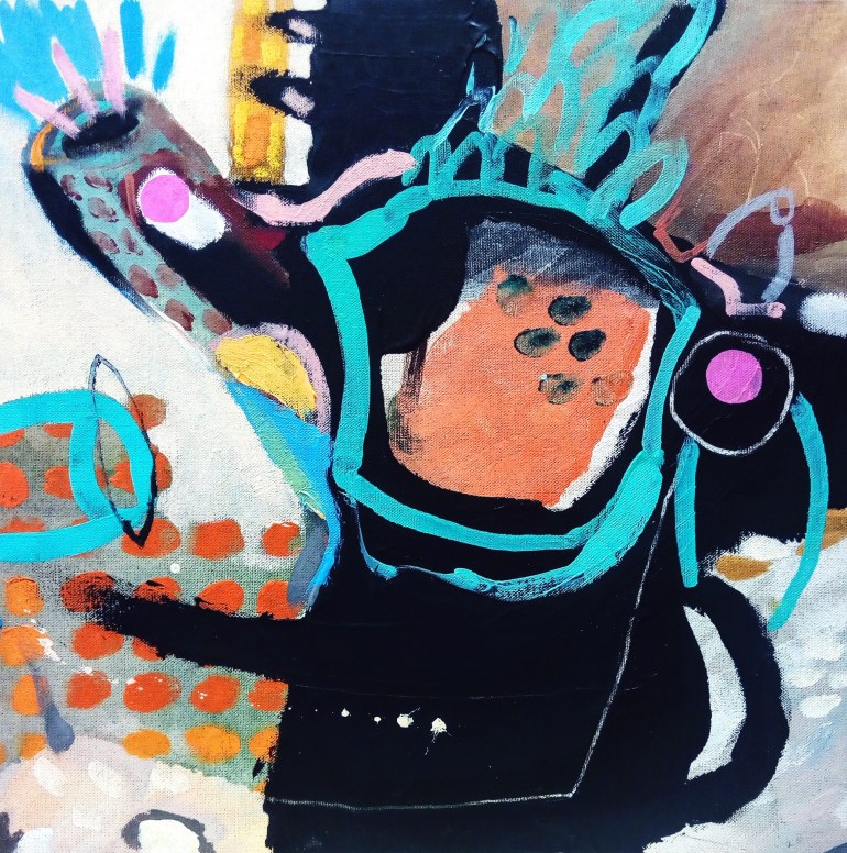 La energía que el color desprende se traduce en sinónimo de libertad, de resistencia; poder vertebrador de un lenguaje visual que da cabida a las polifacéticas interpretaciones del movimiento, del ritmo y la alegría de vivir. Esa fuerza que es pasión, que es lucha, tensión, armonía y desasosiego, a la vez se transforma en la verdadera bandera de esta muestra: un emblema universal que los artistas defendemos como territorio de diálogo y mestizaje de ideas… para ello estamos aquí, todas y todos. Nos levantamos y levantamos nuestra voz, y nuestra voz es el color.