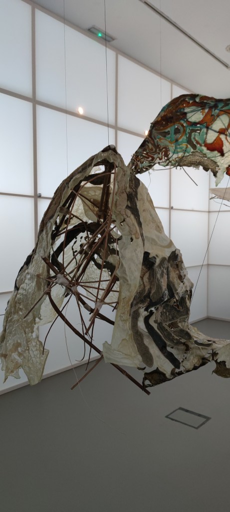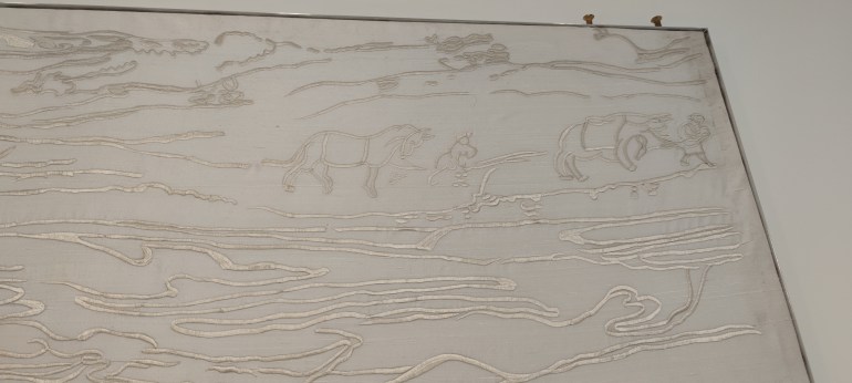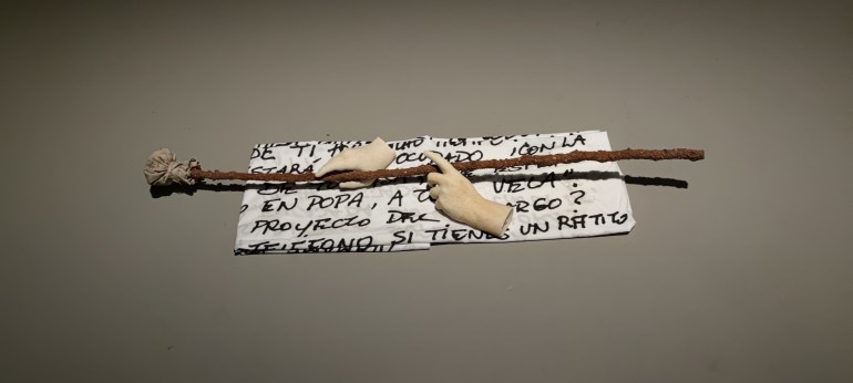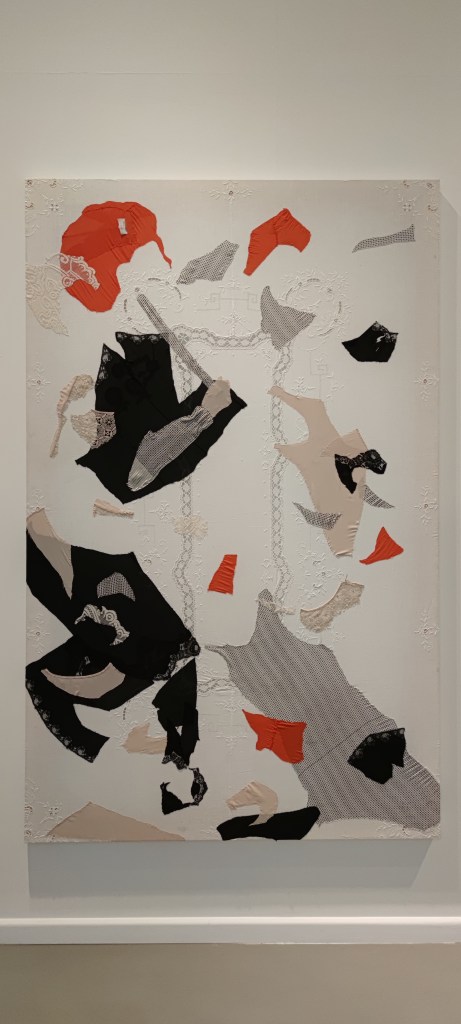 Mónica Mays es antropóloga de formación y en su obra Cardados nos invita a reflexionar sobre la artesanía, el conocimiento tácito y la memoria. La artista se sirve del mantón de Manila para sus esculturas narrativas, impresiones botánicas y tejidos. El mantón de Manila se introdujo al Viejo Mundo desde Filipinas pero su origen está en China. Por ello es que los motivos típicamente orientales, como las pagodas, cambian y pasan a convertirse en claveles y composiciones florales típicamente españolas. Estos bordados trajeron nuevas formas de representación textil. En esta obra se abordan temas como la apropiación cultural.