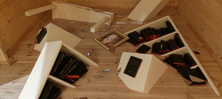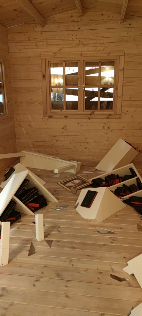 En la sala de la Casa/Museo se hace una reinterpretación del apartamento de Milán de la artista. No reprodujeron al pie de la letra su casa, pero se han recreado su cama, su armario, sus libros, los espacios donde dormía y leía, su vestuario que utilizaba en sus performance, etc.