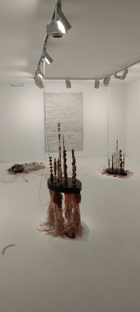 Esther Gatón a partir de su instalación la artista examina las relaciones entre luminosidad y exaltación amorosa y pretende generar un ambiente en el que las esculturas no produzcan sombras. Son esculturas traslucidas hechas de cáscaras de huevo, algas, azúcar y demás materiales biodegradables que minimicen el impacto ambiental lo máximo posible.