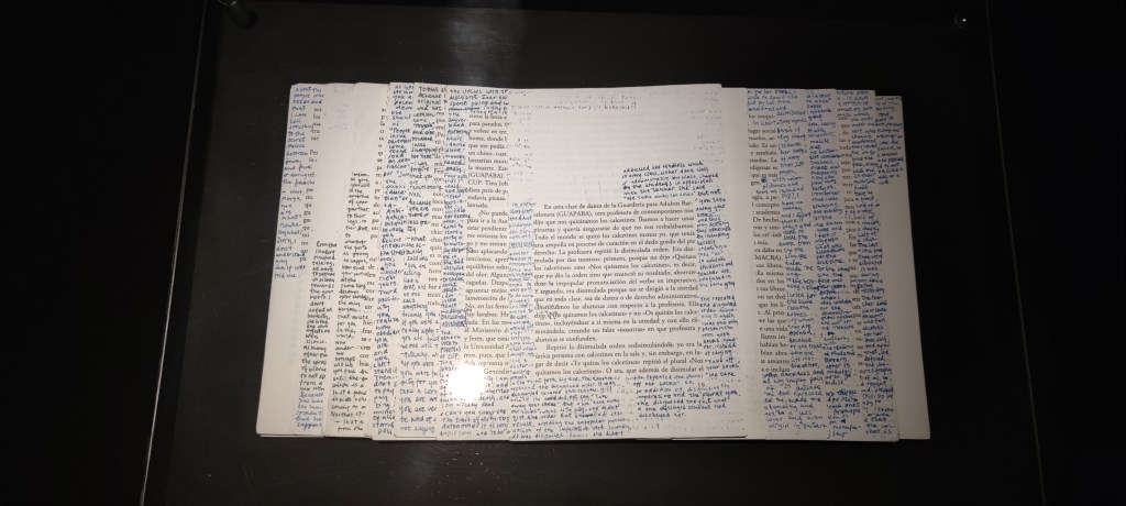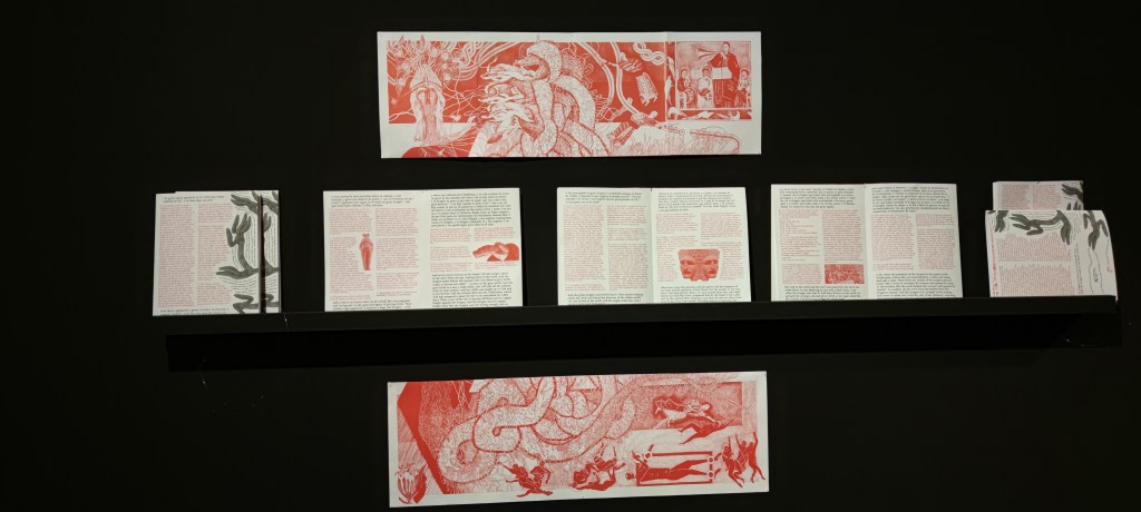 Sara Santana parte de una experiencia personal para crear su obra titulada Revelación: Beato de Ámsterdam. La artista mientas leía en español la novela Lectura fácil de Cristina Morales, la traducía simultáneamente al inglés para sus amigos. La muestra reúne la traducción apócrifa que realizaba en los márgenes del libro, una pieza sonora de la artista haciendo este ejercicio de traducción y diferentes ilustraciones y dibujos, los cuales se inspiran de manera directa en las iluminaciones de códices y manuscritos medievales, concretamente del capítulo 12 del libro de las Revelaciones, realizadas por el beato Facundo.