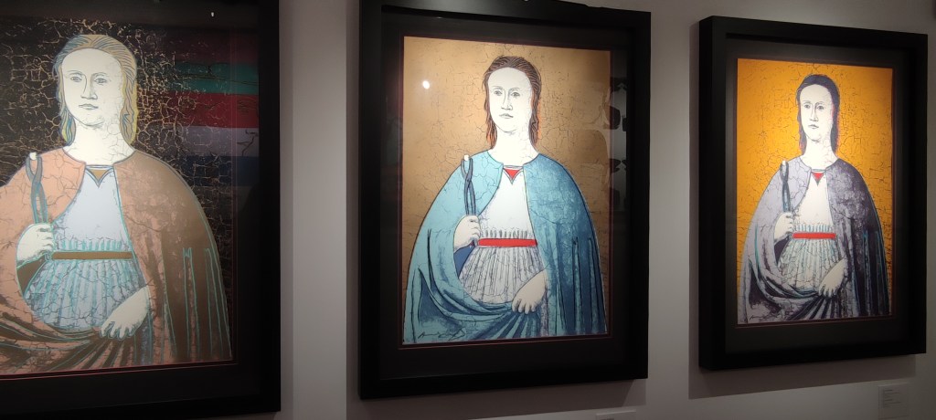 En la primera sala, ubicada en la planta baja del Palacio de Santa Bárbara, encontramos algunas de sus obras más conocidas, como las serigrafías de las latas de sopa de tomate Campbell´s. En esta sección se sientan los precedentes de lo que va a ser una gran revolución artística y cultural. Nos referimos al Pop Art. Este movimiento nació en Estados Unidos a principio de la década de los 70 del siglo pasado. Este arte defiende la democratización y la accesibilidad de este arte a todo tipo de públicos. Este artista de ascendencia eslovaca convirtió en ídolos y objetos de culto figuras como Marilyn Monroe o Mao y objetos comunes y de consumo industrial como la famosa lata de sopa de tomate. Warhol fue pionero en el uso de técnicas de serialización, mediante las cuales reproducía sus obras y le acercaba a la máquina: “la razón por la que pinto de esta manera es porque quiero ser una máquina”.