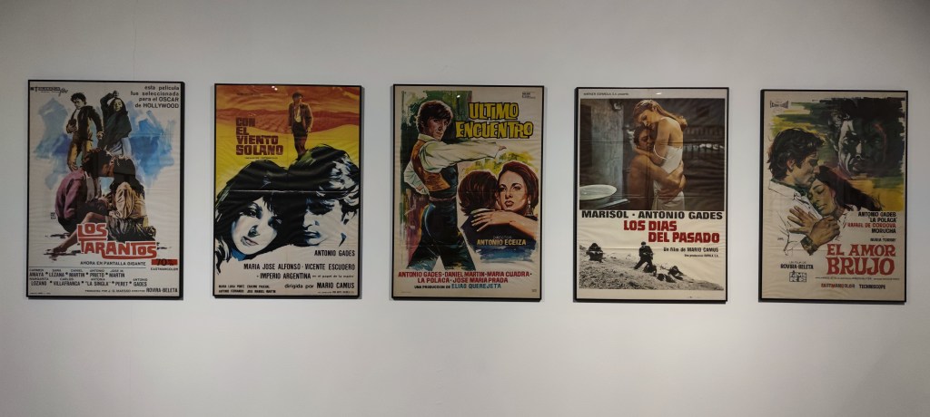 Su relación con el cine de la Mano de Saura es otra de las secciones destacadas. De la mano del director Carlos Saura, la adaptación de la obra Carmen de Mérimée llega a la gran pantalla. Otra de sus actuaciones más aplaudidas fue la de Bernarda Alba en Rango. La exposición también acoge más de una docena de obras gráficas de diferentes pintores del siglo XX. Gades estuvo siempre muy interesado por la historia del arte en general y por la pintura en particular. Autores como Velázquez, Goya, Malévich o Tapies inspiraron al pintor. Concretamente en su obra Fuenteovejuna bebió de las pinturas del maestro barroco y de las obras teatrales del Siglo de Oro español. Su interés y afición por la pintura hizo que realizara algunas pinturas y su labor como coleccionista le llevó a reunir piezas de enorme valor artístico.