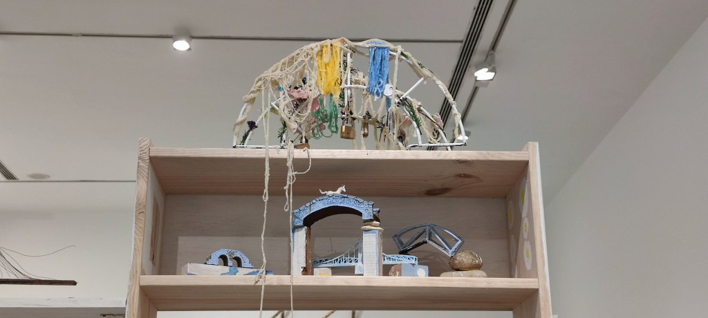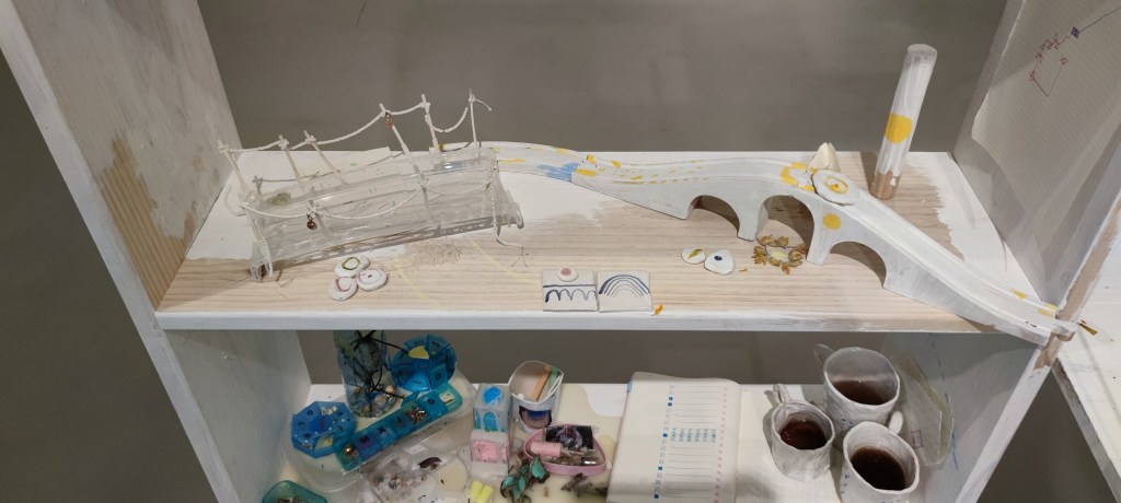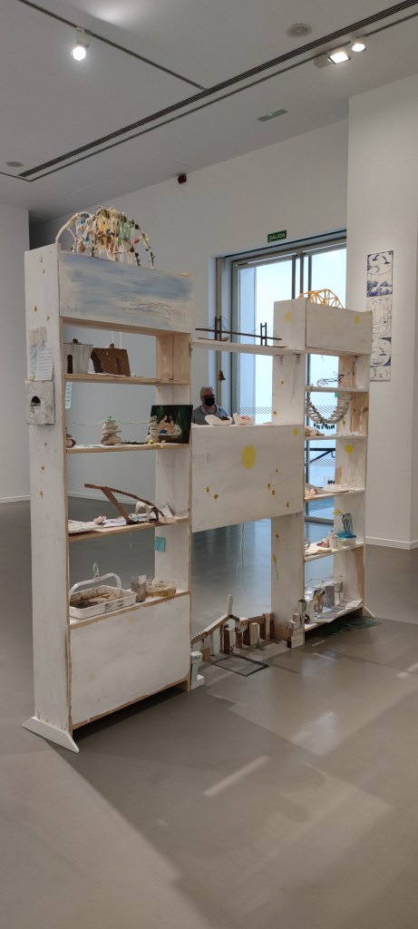 La primera obra con la que el espectador se encuentra al entrar en la Sala A es la reproducción de la estantería de su habitación de su hogar en Galicia que está repleta de objetos cotidianos como calendarios, velas y maquetas de puentes, los cuales aluden a la idea de tránsito.